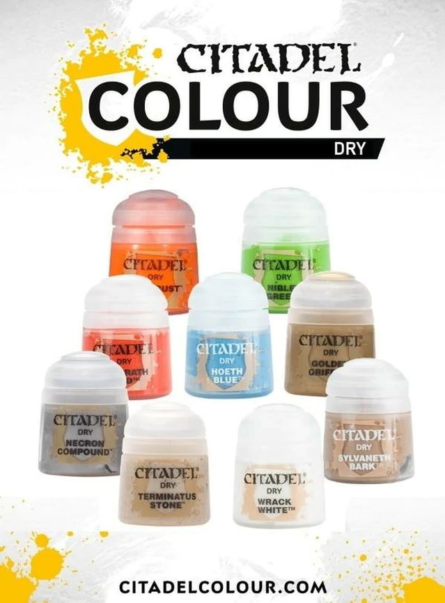Dry paints are formulated to be perfect for drybrushing, with a thicker texture than normal paint designed to catch on the raised edges of your mode. This useful technique makes highlighting and capturing detail simple.