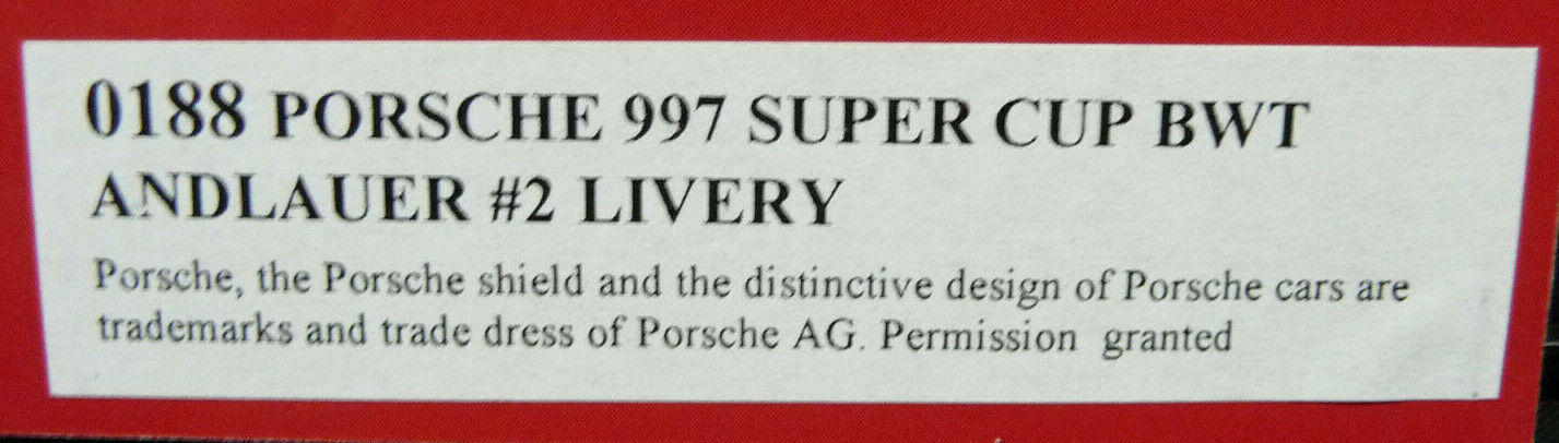 > NSR 1:32 0188AW Porsche 997 Super Cup BWT J.Andlauder No.2 scalextric/carrera