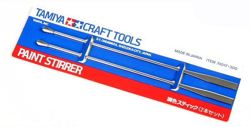 Paint Stirrer This stainless steel tool is designed for stirring bottled paints and for blending different color shades. One end is shaped like a small spoon while the other is flat like a spatula. Tool length is 15cm. Includes two stirrers.