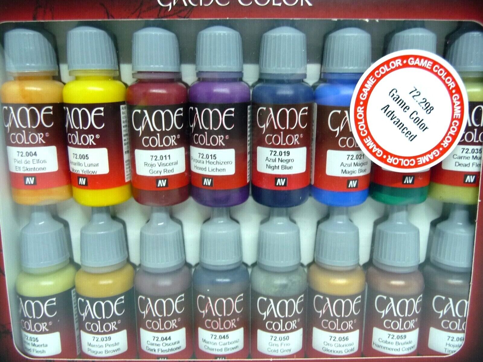 We use Australia Post Express E-Parcel FAST EXPRESS shipping on all orders! Orders will be posted the following day after order is placed. Weekend orders ship on the following Monday We accept both Credit and Debit card Payments. Payments by PayPal secure payment gateway A PayPal Account is not required to make payment. All credit cards and debit cards accepted. Our Returns Policy We cannot refund or exchange goods for change of mind or errors you made in your order. We may however, at our sole discretion, allow a return on a case-by-case basis, provided that the item in question is: If we allow a return in these circumstances, you are responsible for payment of return postage on your order. Under no circumstances can we accept change of mind returns. WE ARE A SHOP AND ALL THE STOCK WE SELL IS BRAND NEW VALLEJO GAME 72298 16 Game Colour Advanced Set Acrylic Paint FOR PAINTING MODELS AND MINIATURES. Content: Acrylics colors in a matt and opaque, water-based formula, especially designed for brush-on use. Each color has been meticulously developed in collaboration with model-painters who specialize in fantasy figures and dioramas. The formulation of these colors has been developed signed taking into account that some of these figures are used in tabletop games, so that Game Color is manufactured with a revolutionary new resin which offers extraordinary resistance to the damage caused by frequent handling. It is recommended to apply Game Color on a previously primed surface. The colors dry rapidly and form a homogenous and self-leveling film while preserving even the smallest detail of a miniature. Game Color presents an extra ordinary adherence on all grounds, such as resin, plastic, steel and white metal. Painting tools are cleaned with water. Game Color is not flammable, and does not contain solvents. SKIN TONES, INKS AND INTRODUCTION PACKS ALSO AVAILABLE IN OUR STORE, HAVE A LOOK AT ALL OUR LISTINGS TATES TOYWORLD GEELONG. We use Australia Post Express E-Parcel FAST EXPRESS shipping on all orders! Orders will be posted the following business day after purchase. Weekend orders ship on the following Monday. In the very unlikely event that your item is lost or damaged during post, then WE are responsible and will issue either a full refund or replacement. We accept both Credit and Debit card Payments.