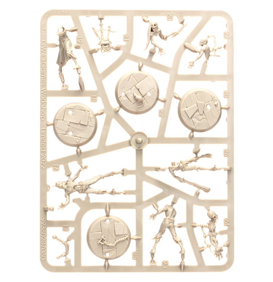 – 7x push-fit Exiled Dead miniatures – no glue required to assemble, cast in a cadaverous grey to stand out even when unpainted